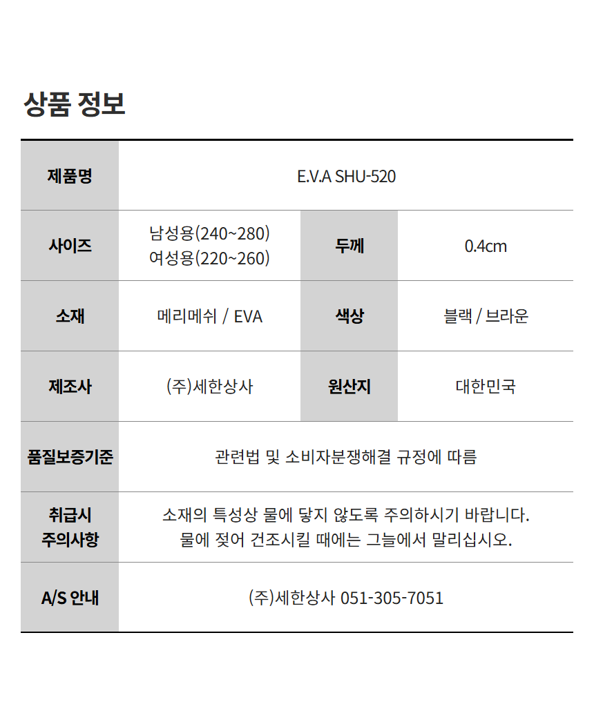 0.4CM EVA 남성용 깔창 E.V.A SHU-520